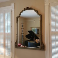 A local engineer and hobby carpenter specialized in creating heirloom quality reproductions of furniture pieces from the 18th-20th centuries. One of his mirrors had been damaged over the past few years. The damaged sections of the frame were recreated while the remainder of the vintage piece was preserved.